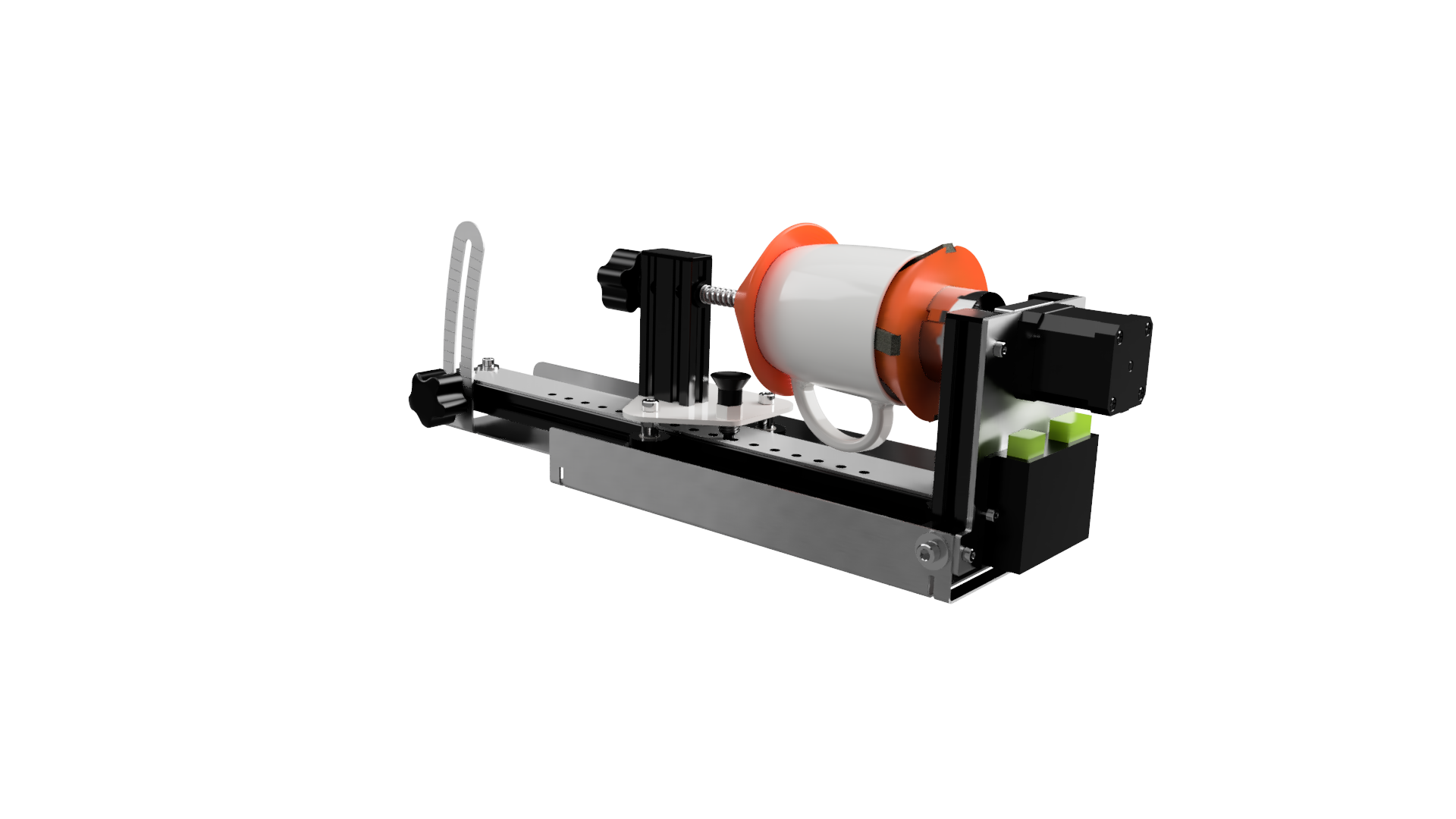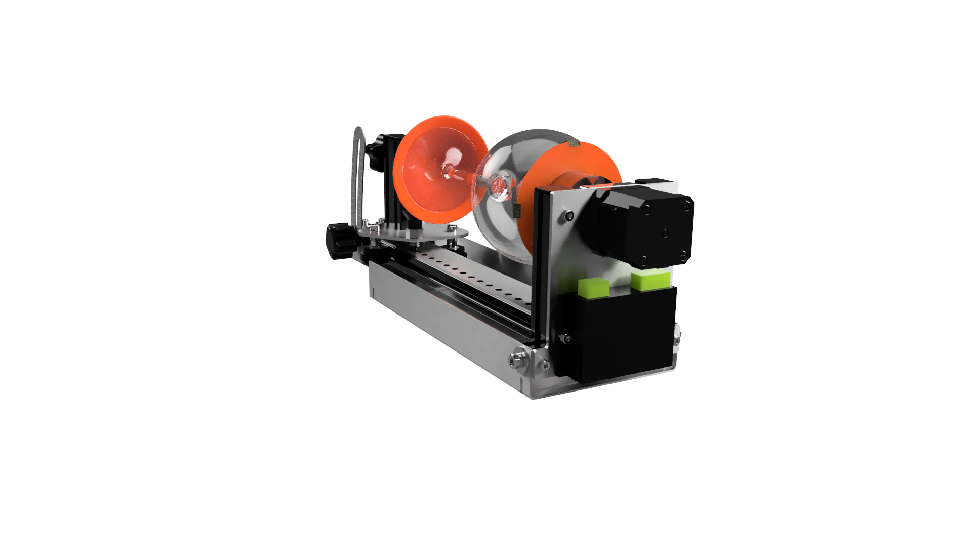 Dzięki podwyższonemu zawieszeniu ten obrotowy moduł grawerujący umożliwia również szybkie i bezproblemowe grawerowanie laserowe przedmiotów z wypukłościami, takimi jak uszka szklanki lub głowa.