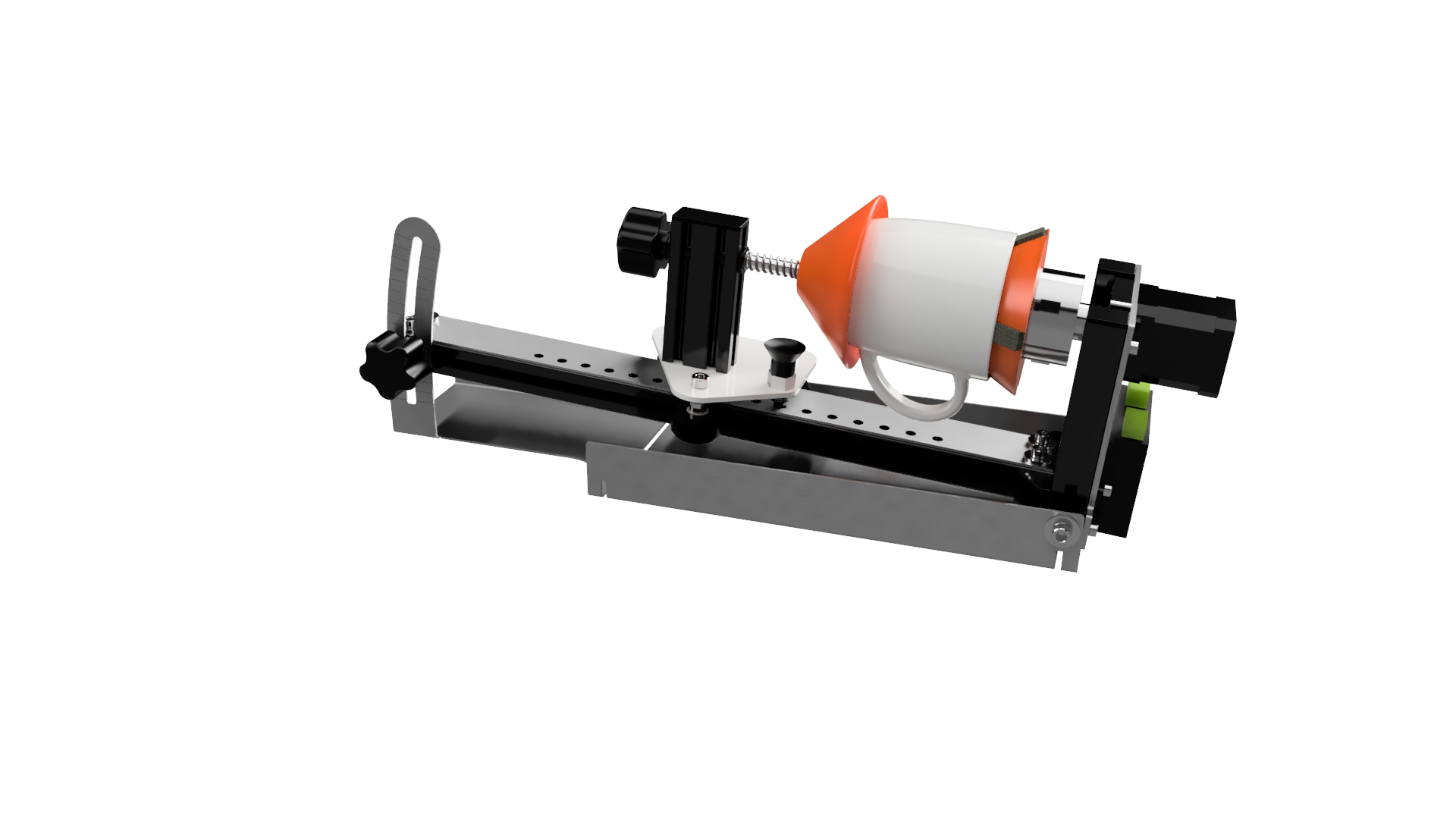 Kąt tej jednostki obrotowej jest bezstopniowy i doskonale regulowany od całkowicie poziomego do kąta 15 stopni.